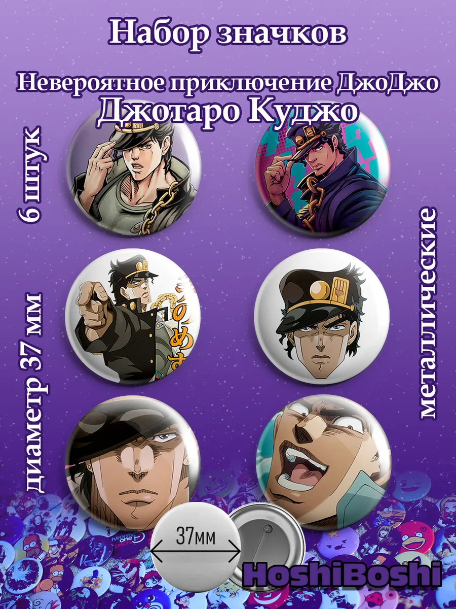 Набор из 6 металлических значков с изображениями из аниме Невероятные Приключения Джо Джо ( JoJo's Bizarre Adventure ).