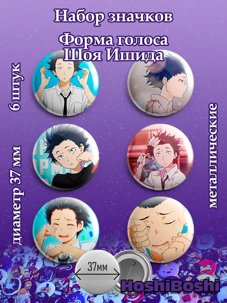 Набор из 6 металлических значков с изображениями из аниме Форма голоса ( Koe no katachi A Silent Voice ).