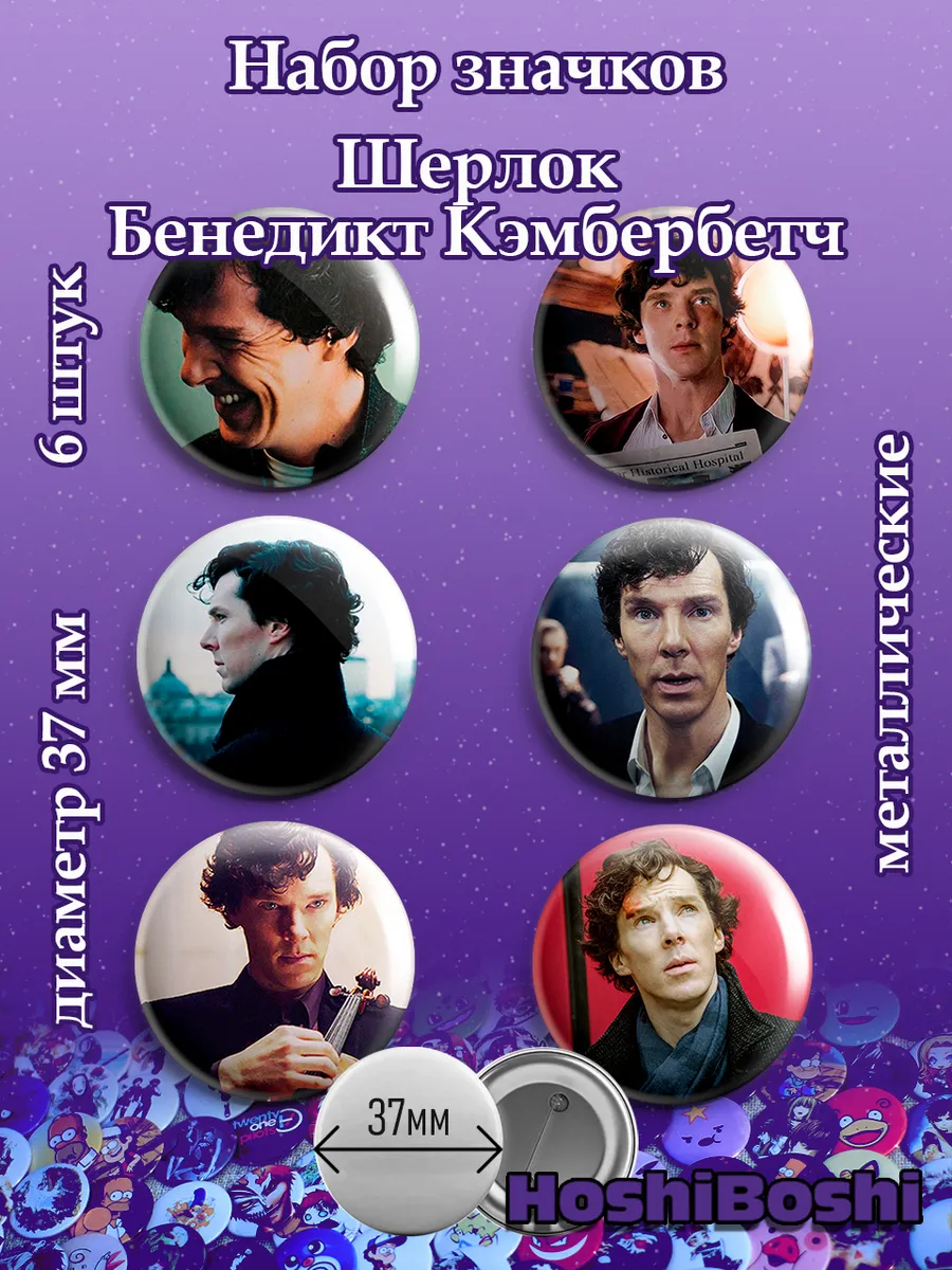 Набор из 6 металлических значков с изображениями из сериала Шерлок ( Sherlock ).