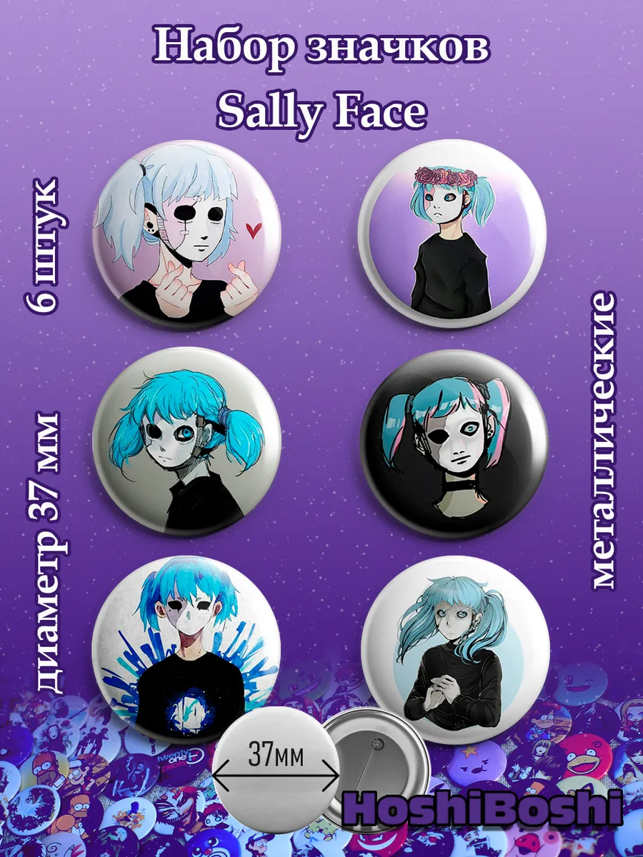 Набор из 6 металлических значков с изображениями с игрой Салли Фэйс ( Sally Face ).