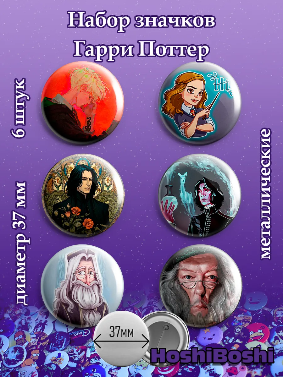 Набор из 6 металлических значков с изображениями из вселенной Гарри Поттер ( Harry Potter ).