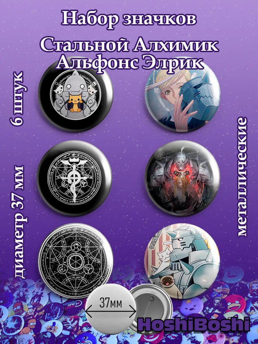 Набор из 6 металлических значков с изображениями из аниме Стальной алхимик ( Fullmetal Alchemist ).
