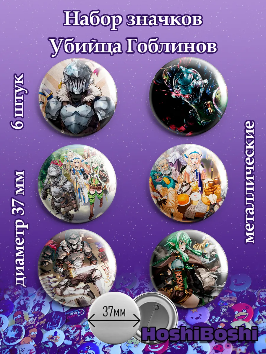 Набор из 6 металлических значков с изображениями из аниме Убийца гоблинов ( Goblin Slayer ).