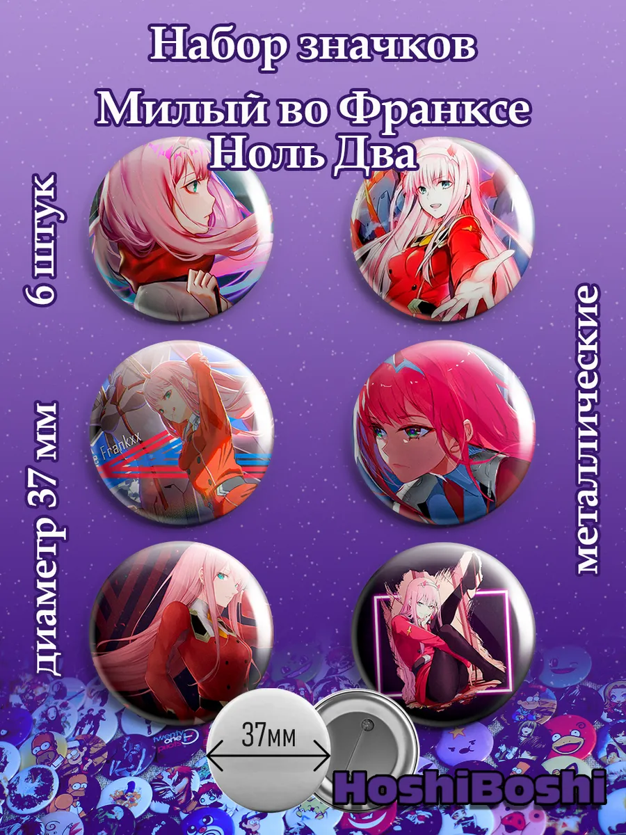 Набор из 6 металлических значков с изображениями из аниме Милый во Франксе ( Darling in the Franxx ).