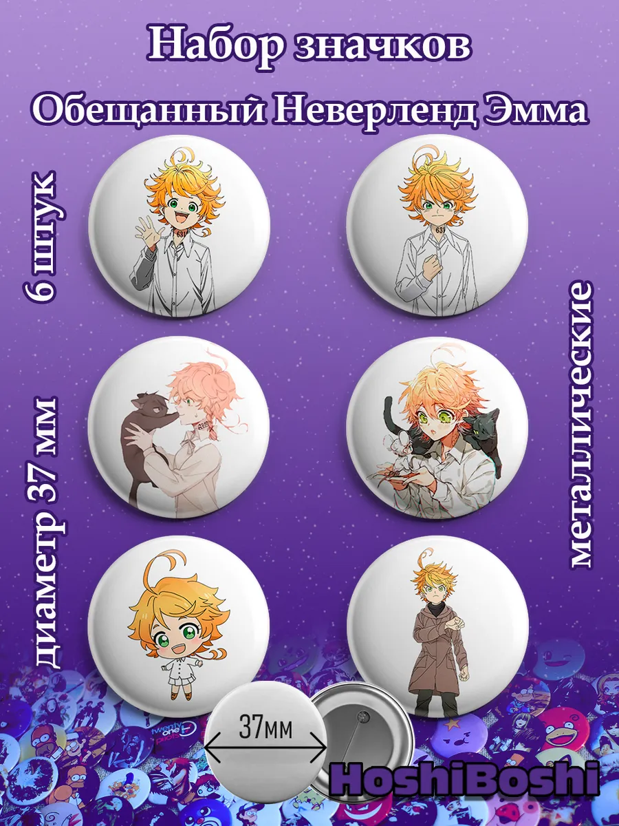 Набор из 6 металлических значков с изображениями из аниме Обещанный Неверленд ( The Promised Neverland ).