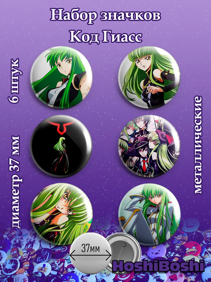 Набор из 6 металлических значков с изображениями из аниме Код Гиас ( Code Geass ).