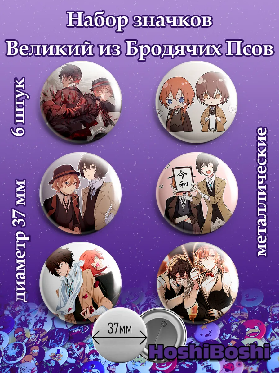 Набор из 6 металлических значков с изображениями из аниме Великий из Бродячих псов ( Bungo Stray Dogs ).