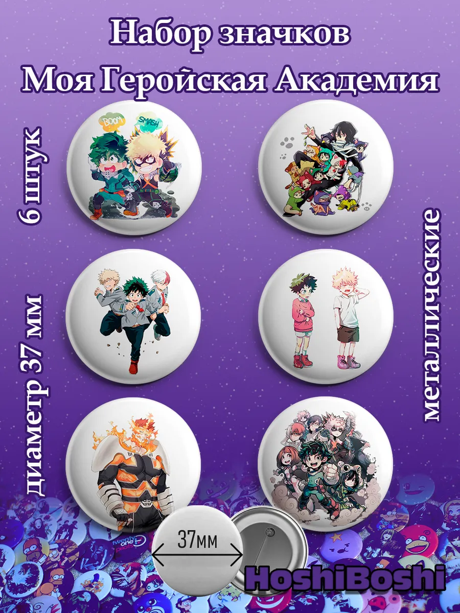 Набор из 6 металлических значков с изображениями из аниме Моя геройская академия ( Boku no Hero Academia ).