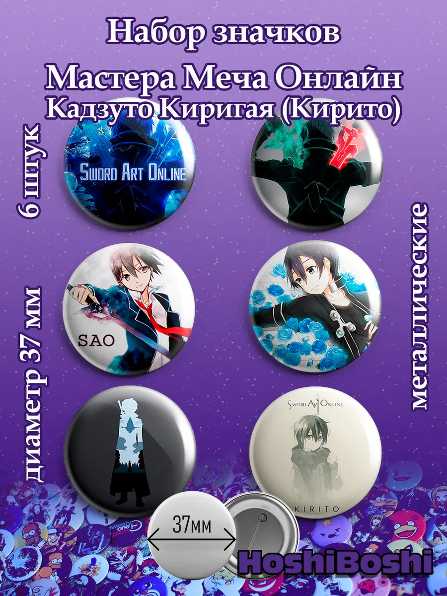 Набор из 6 металлических значков с изображениями из аниме Мастера меча онлайн ( Sword Art Online ).