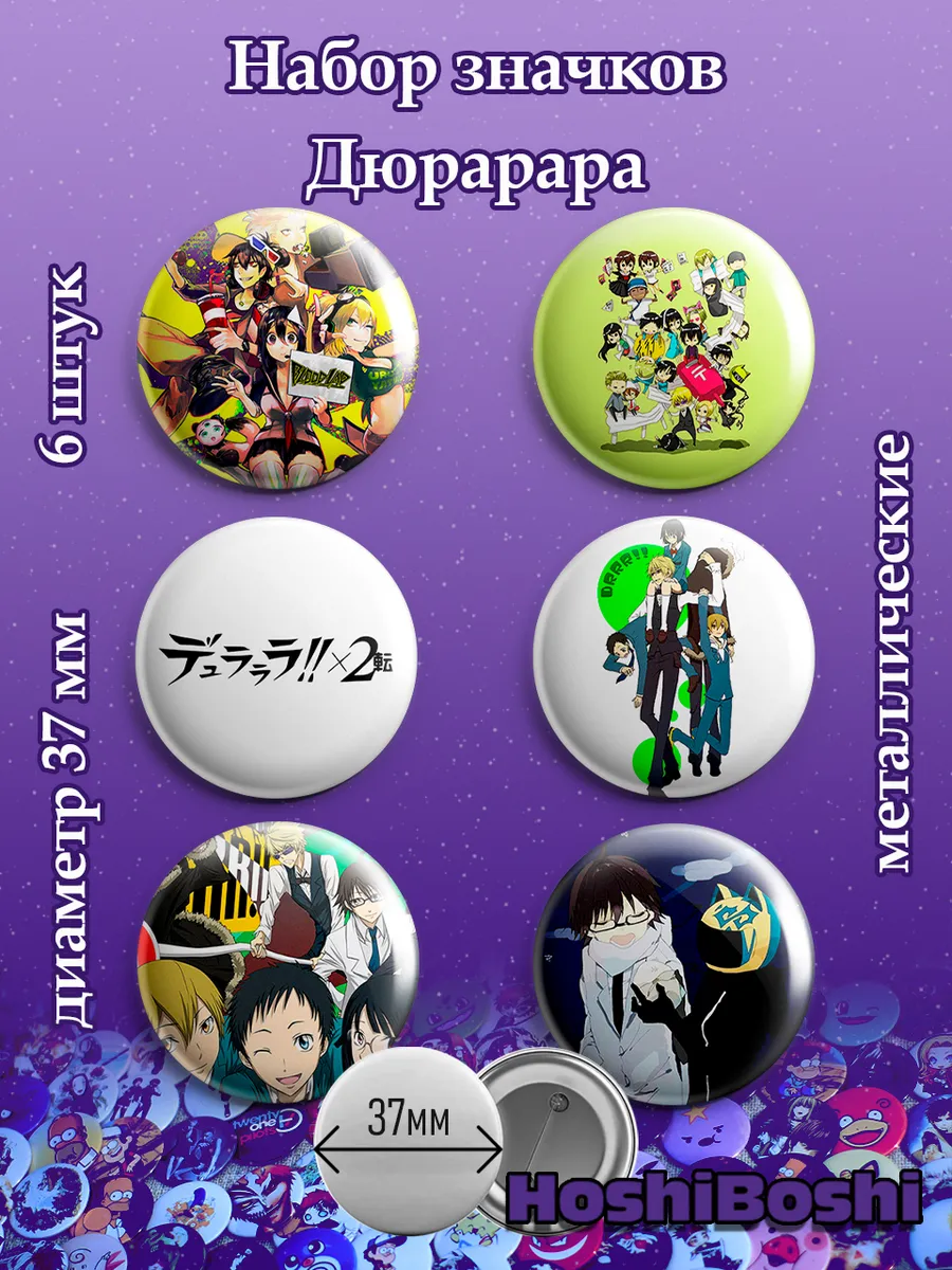 Набор из 6 металлических значков с изображениями из аниме аниме Дюрарара ( Durarara ).