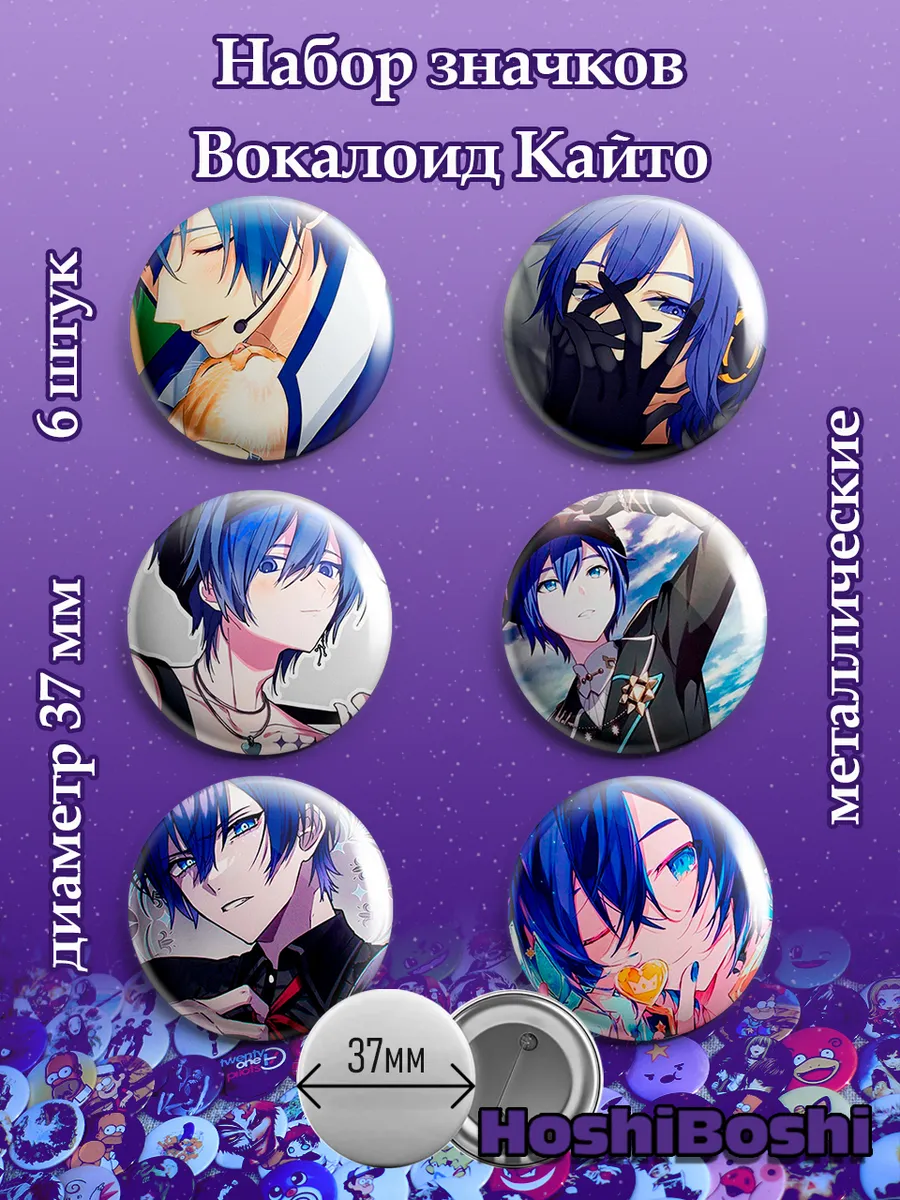 Набор из 6 металлических значков с изображениями Вокалоидов ( Vocaloid ).