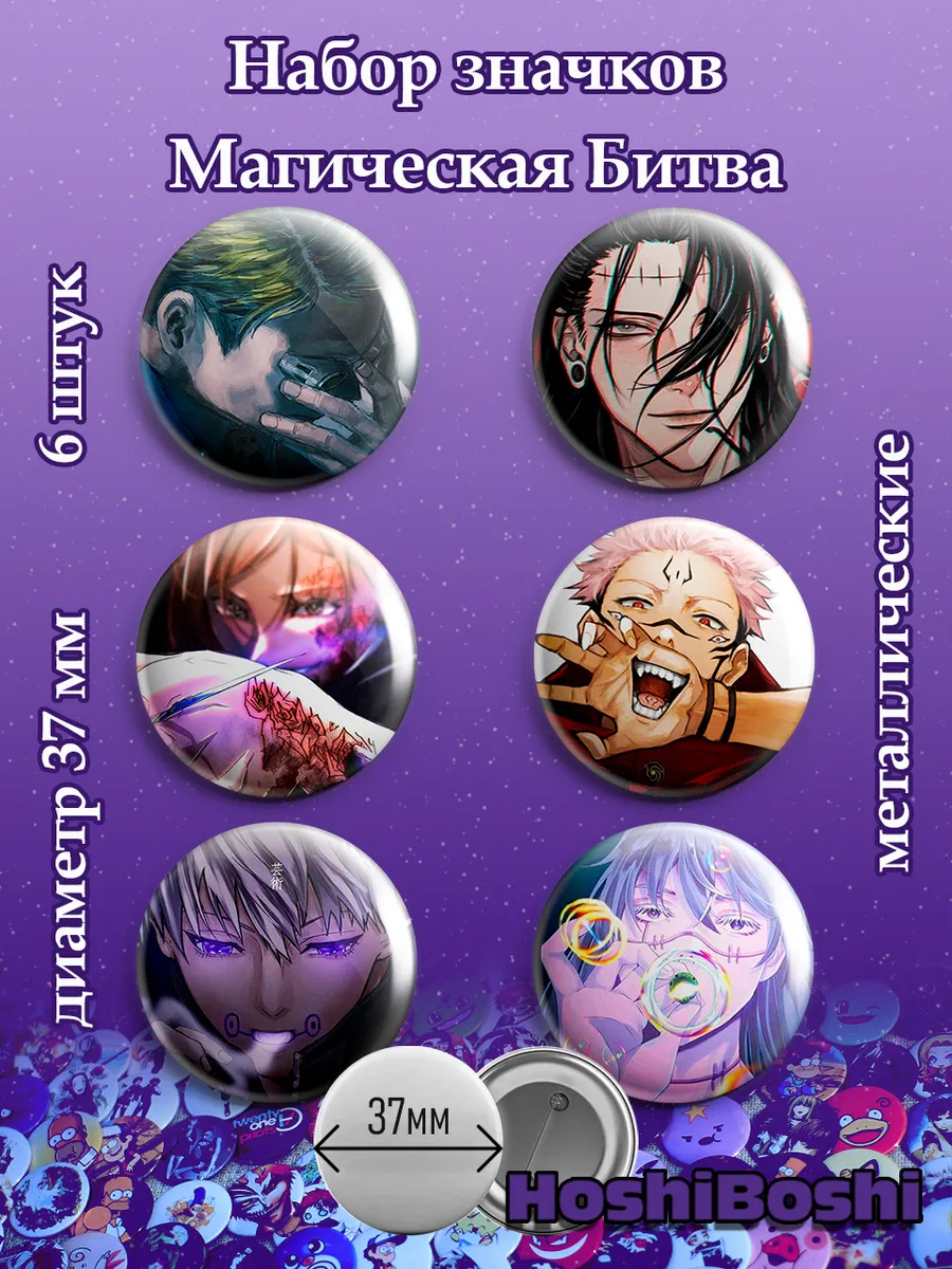 Набор из 6 металлических значков с изображениями из аниме Магическая Битва ( Jujutsu Kaisen ).