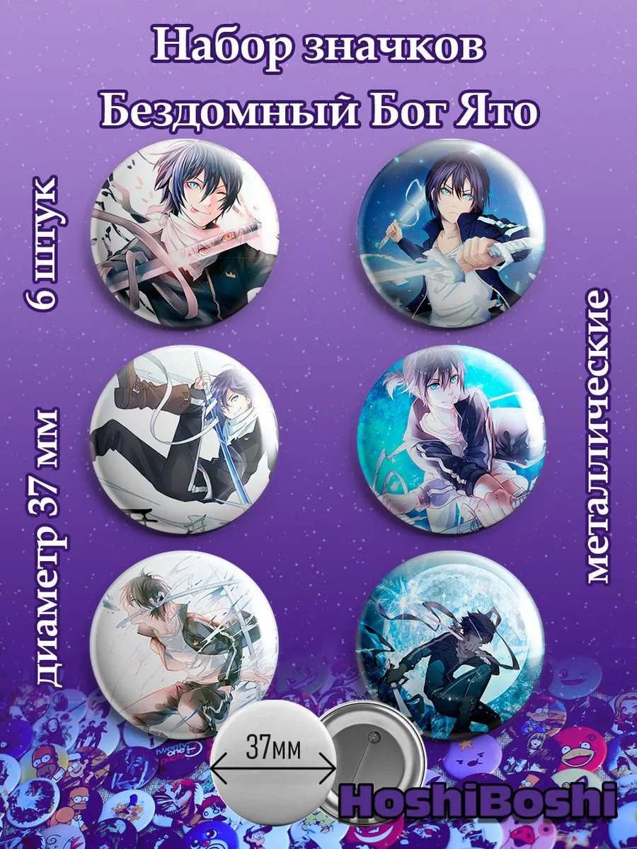 Набор из 6 металлических значков с изображениями из аниме Бездомный Бог ( Noragami ).