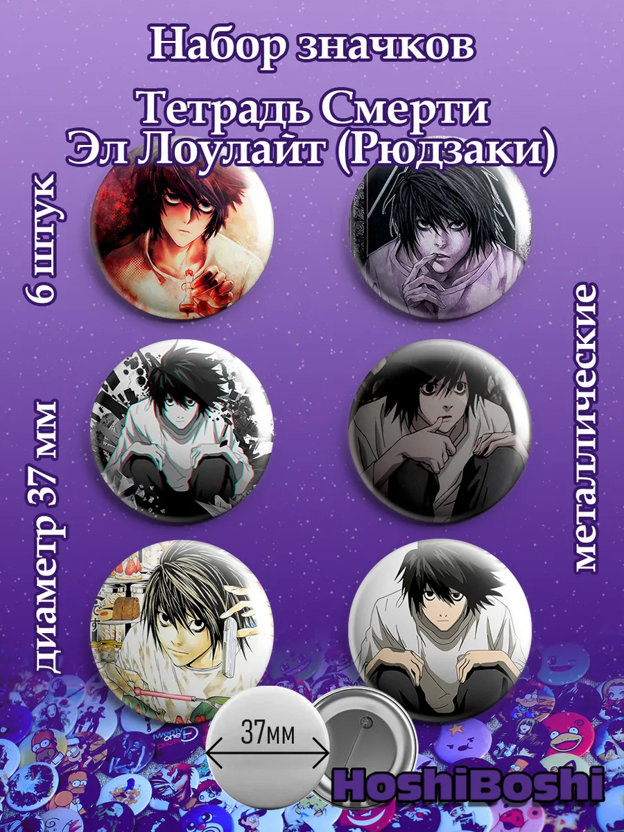 Набор из 6 металлических значков с изображениями из аниме Тетрадь смерти ( Death Note ).