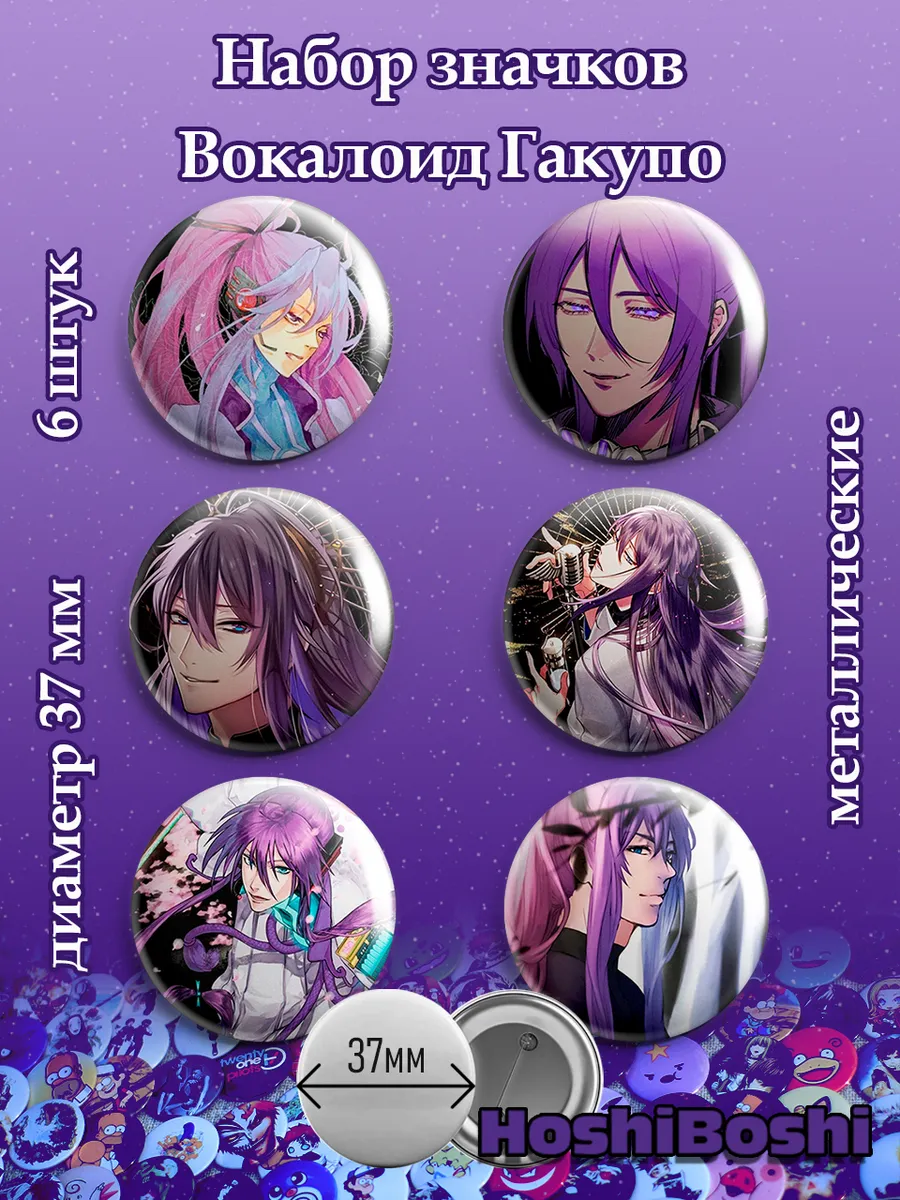 Набор из 6 металлических значков с изображениями Вокалоидов ( Vocaloid ).