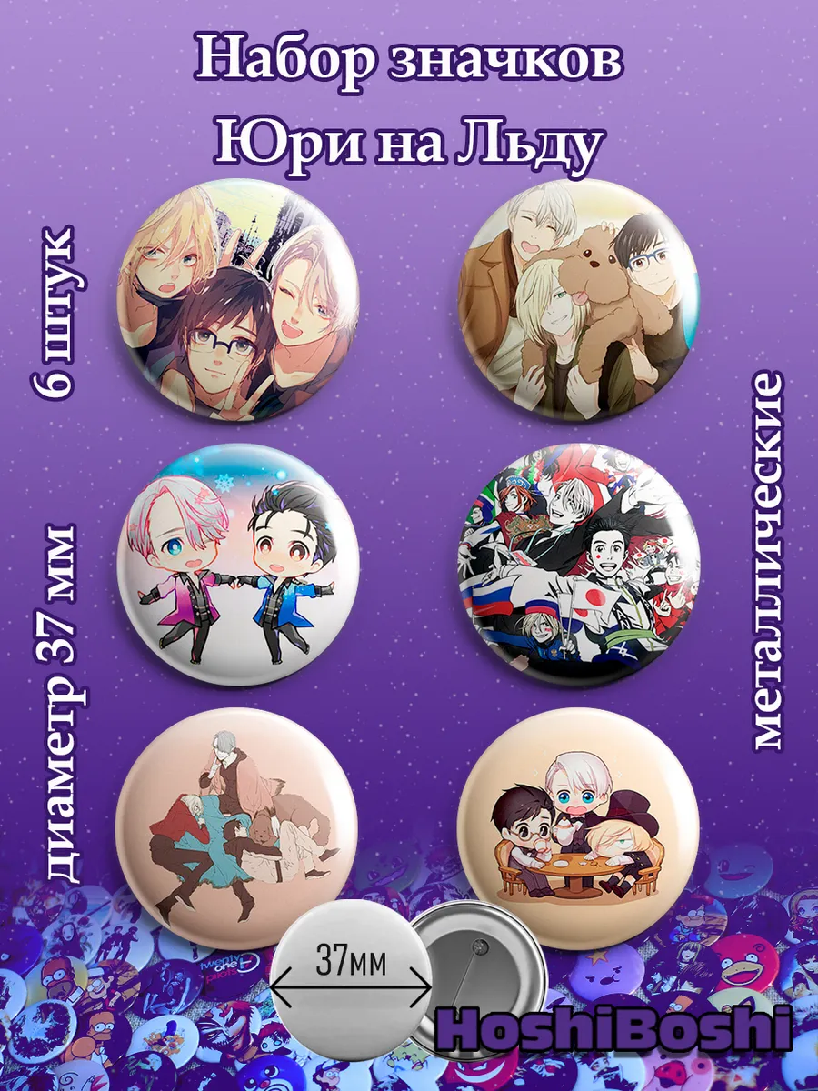 Набор из 6 металлических значков с изображениями из аниме Юри на льду ( Yuri on Ice ).