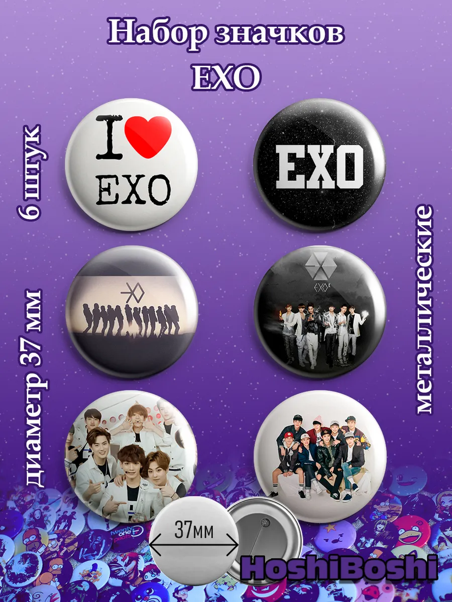 Набор из 6 металлических значков с изображениями с Кей-поп группой Экзо ( EXO ).