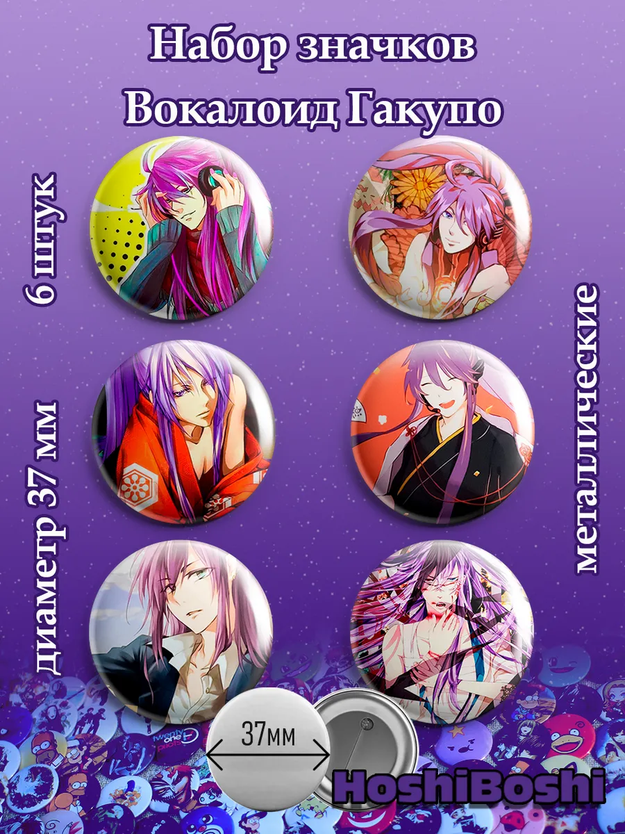 Набор из 6 металлических значков с изображениями Вокалоидов ( Vocaloid ).