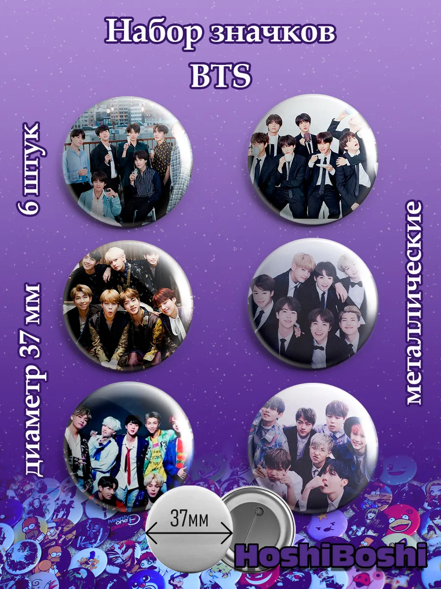 Набор из 6 металлических значков с изображениями с Кей-Поп группой БТС ( BTS ).