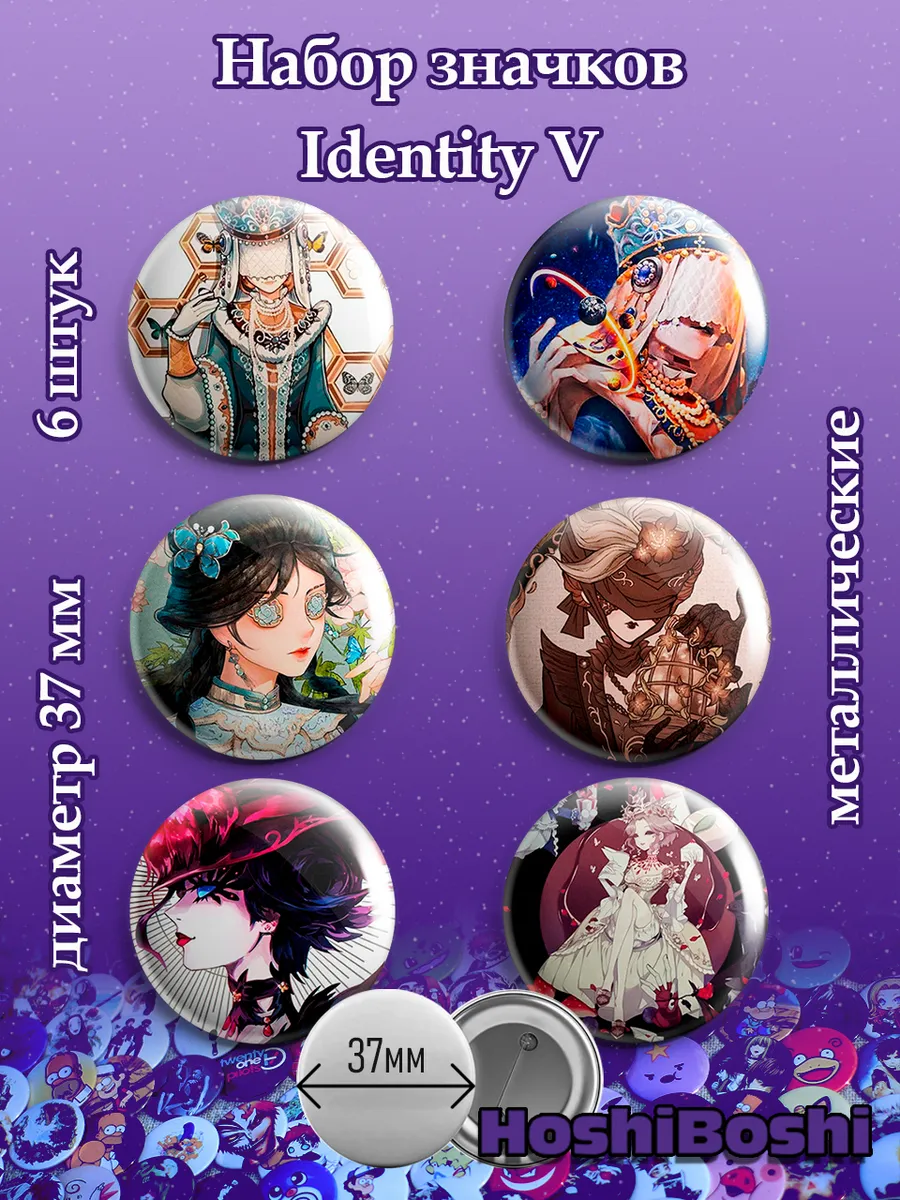 Набор из 6 металлических значков с изображениями из игры Идентити Файф ( Identity V ).