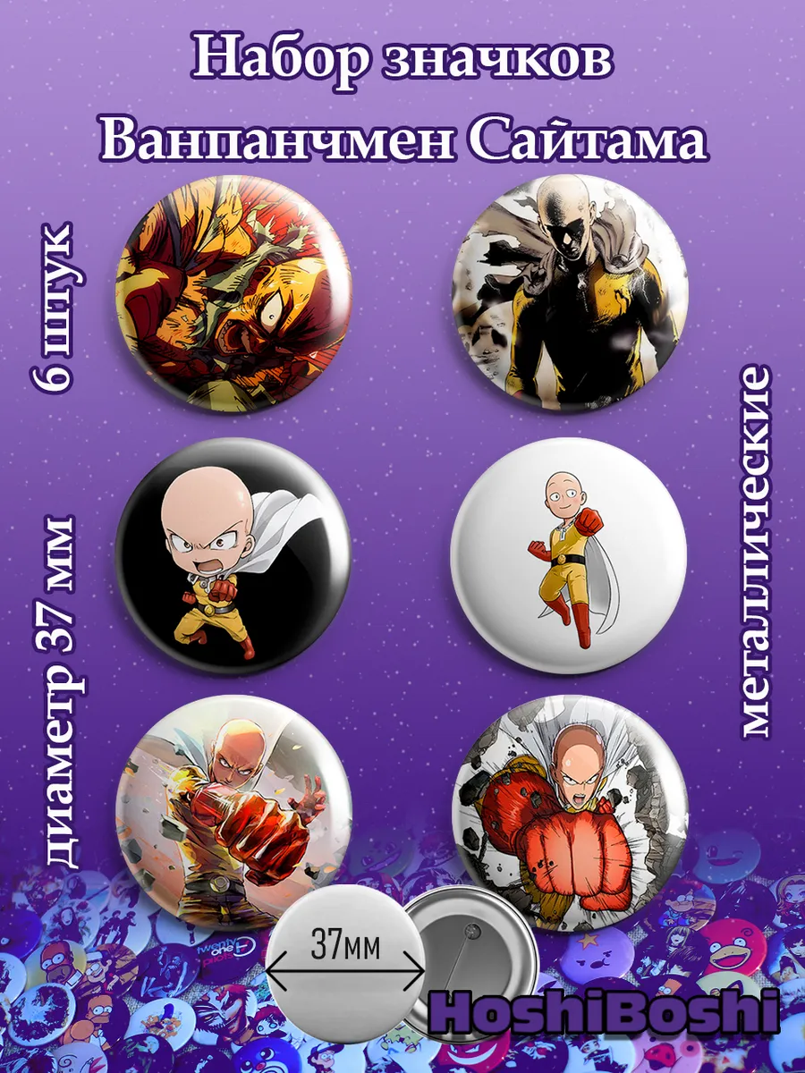 Набор из 6 металлических значков с изображениями из аниме Ванпанчмен ( One-Punch Man ).