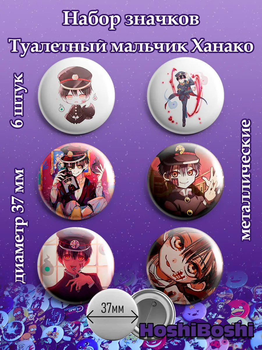 Набор из 6 металлических значков с изображениями из аниме Туалетный мальчик Ханако ( Jibaku Shounen Hanako-kun Toilet-Bound Hanako-kun ).