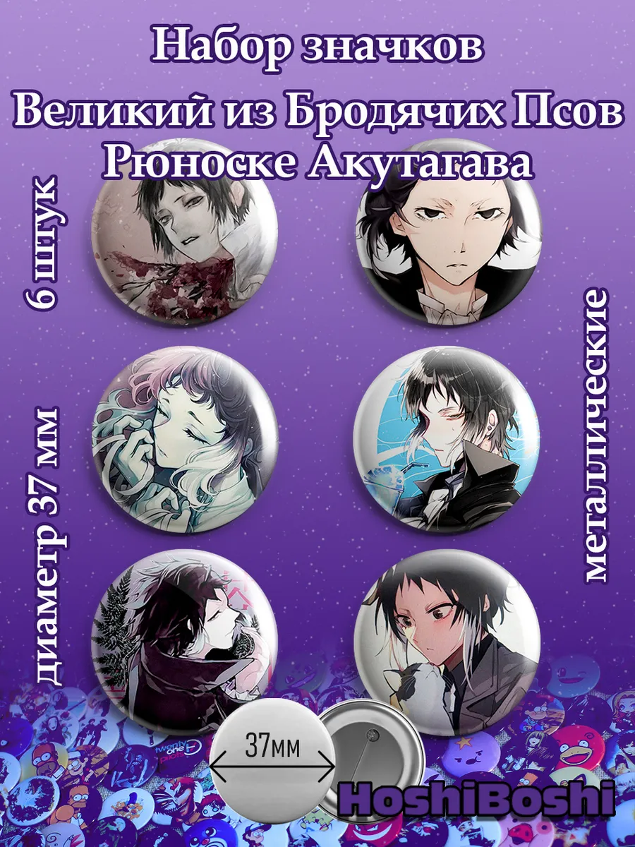Набор из 6 металлических значков с изображениями из аниме Великий из Бродячих псов ( Bungo Stray Dogs ).