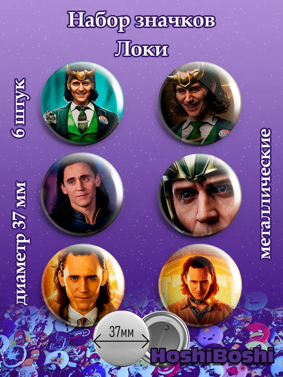 Набор из 6 металлических значков с изображениями персонажа Локи ( Loki ).