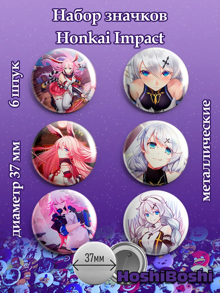 Набор из 6 металлических значков с изображениями из игры Хонкай Импакт ( Honkai Impact ).