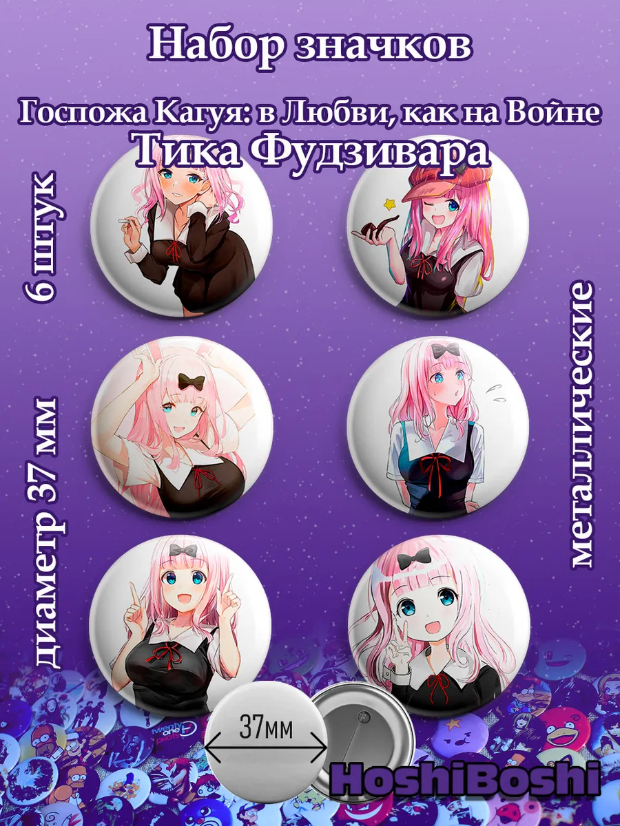 Набор из 6 металлических значков с изображениями из аниме Госпожа Кагуя: в любви, как на войне ( Kaguya-sama wa Kokurasetai: Tensai-tachi no Renai Zunousen ).