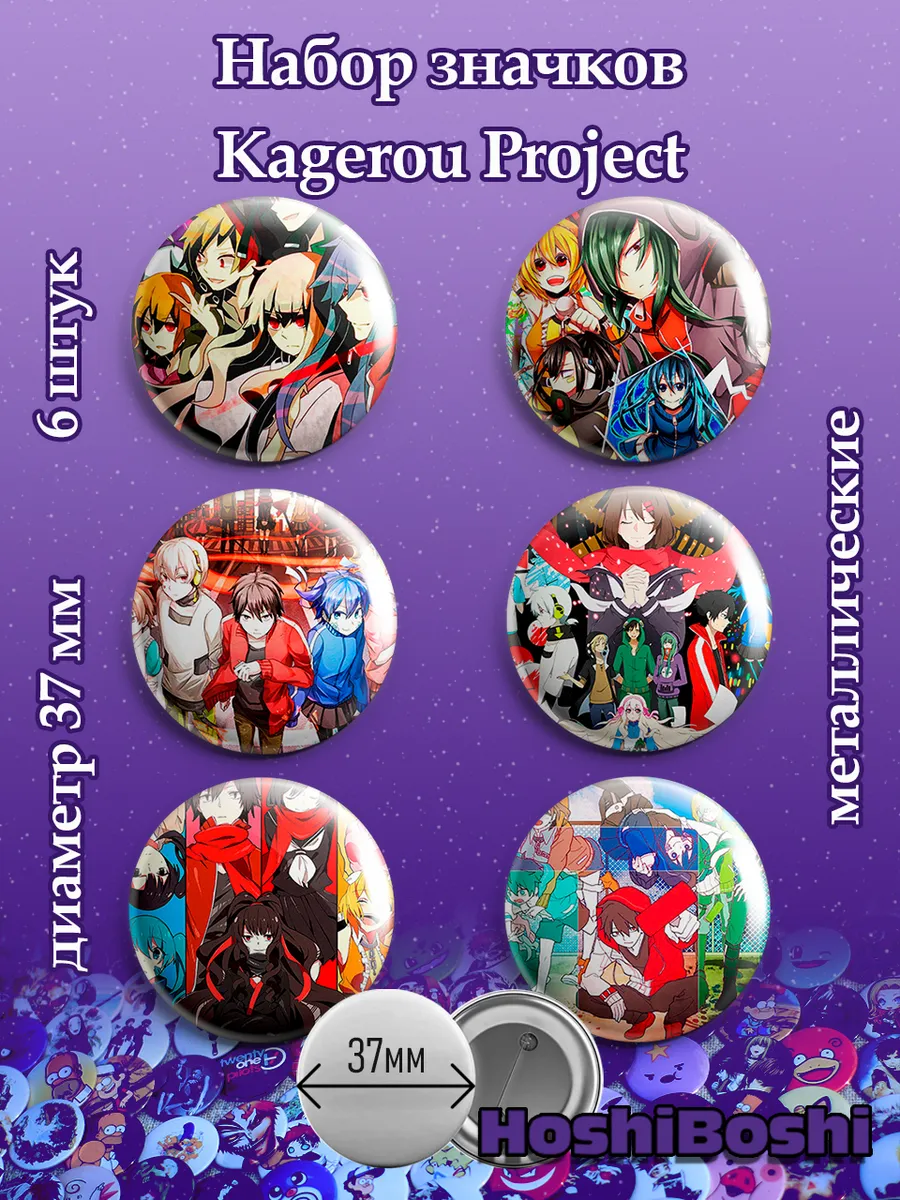 Набор из 6 металлических значков с изображениями из аниме Актеры города Мэкаку ( Kagerou Project ).