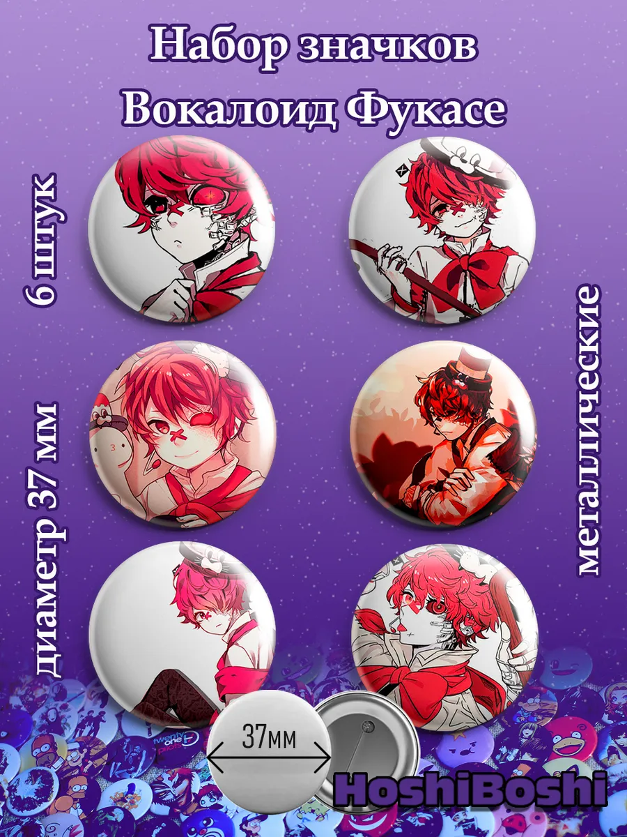 Набор из 6 металлических значков с изображениями Вокалоидов ( Vocaloid ).