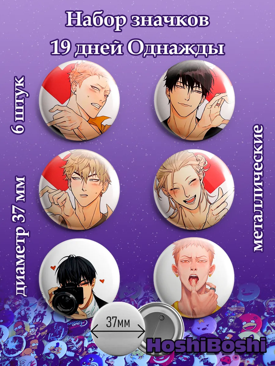 Набор из 6 металлических значков с изображениями из манхвы 19 дней Однажды ( 19 Days — One Day ).