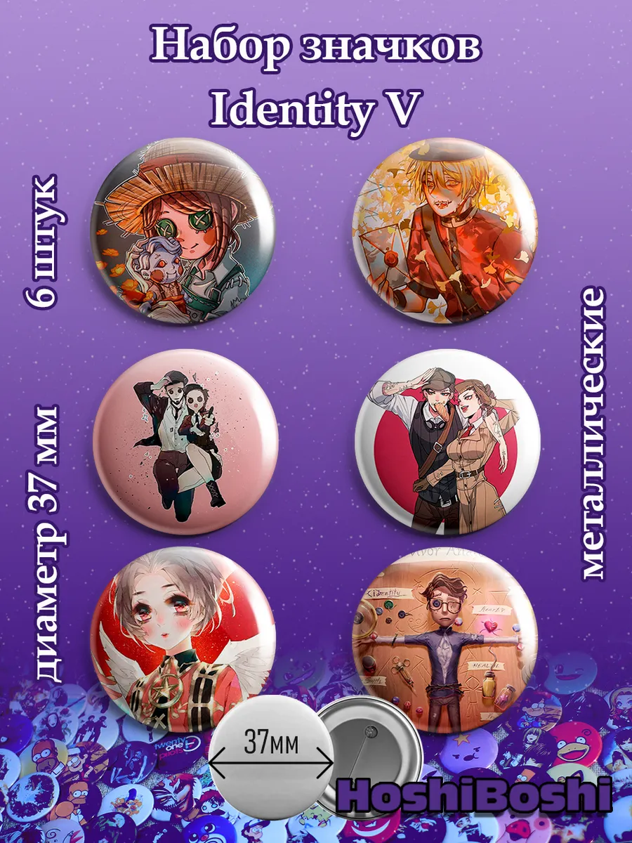 Набор из 6 металлических значков с изображениями из игры Идентити Файф ( Identity V ).