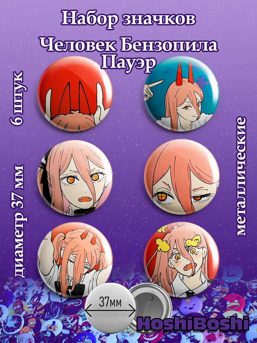 Набор из 6 металлических значков с изображениями из аниме Человек Бензопила ( Chainsaw Man ).