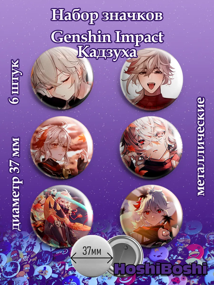 Набор из 6 металлических значков с изображениями из игры Геншин Импакт ( Genshin Impact ).
