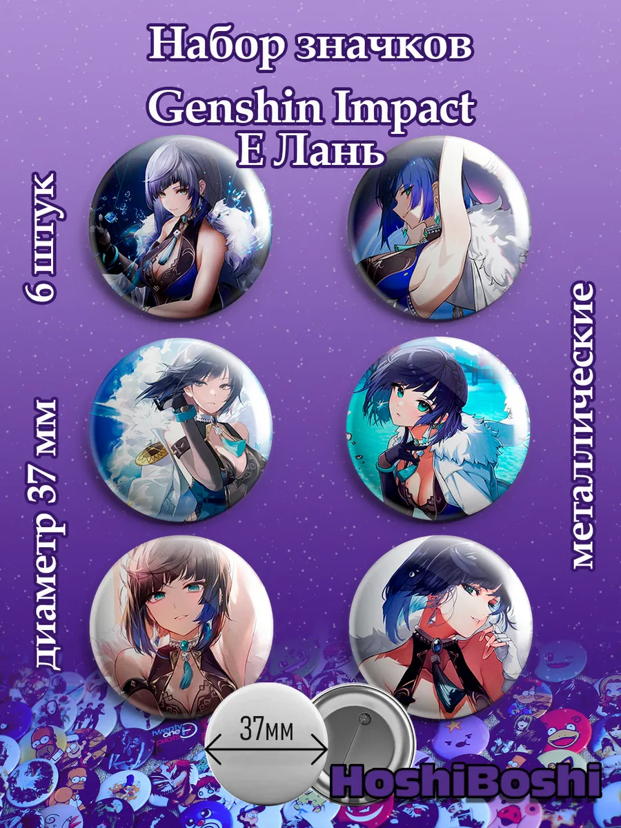 Набор из 6 металлических значков с изображениями из игры Геншин Импакт ( Genshin Impact ).
