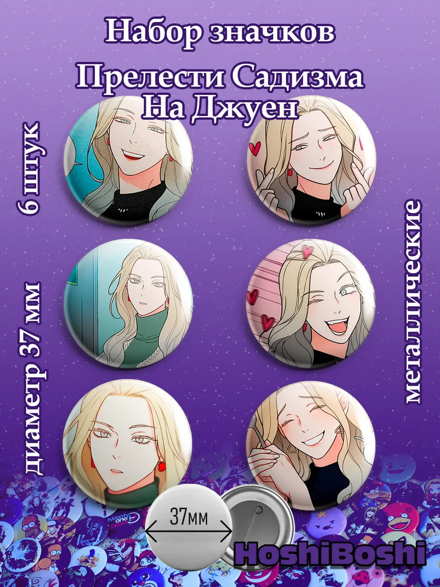Набор из 6 металлических значков с изображениями из манхвы Прелести садизма ( Sadistic Beauty ).