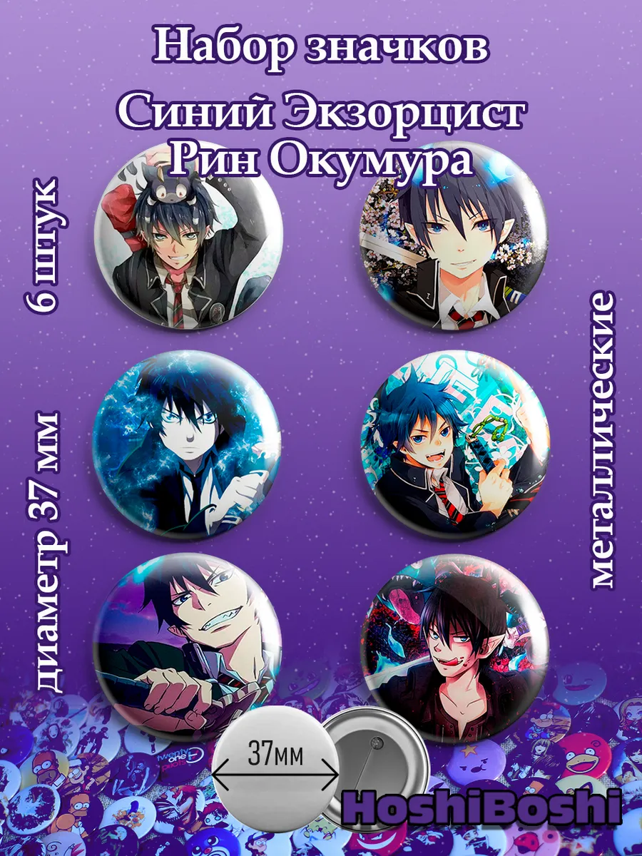 Набор из 6 металлических значков с изображениями из аниме Синий Экзорцист ( Blue Exorcist ).