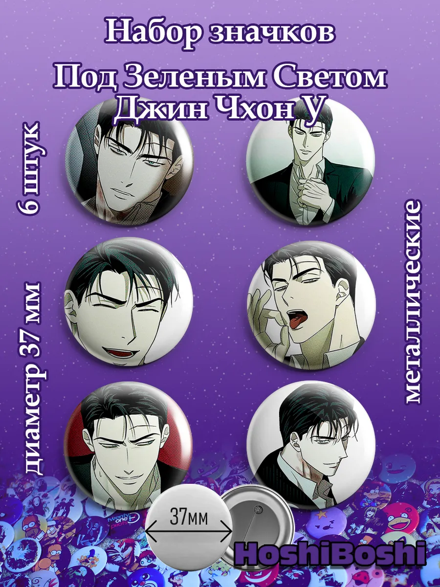 Набор из 6 металлических значков с изображениями из манхвы Под зеленым светом ( Under the Greenlight ).