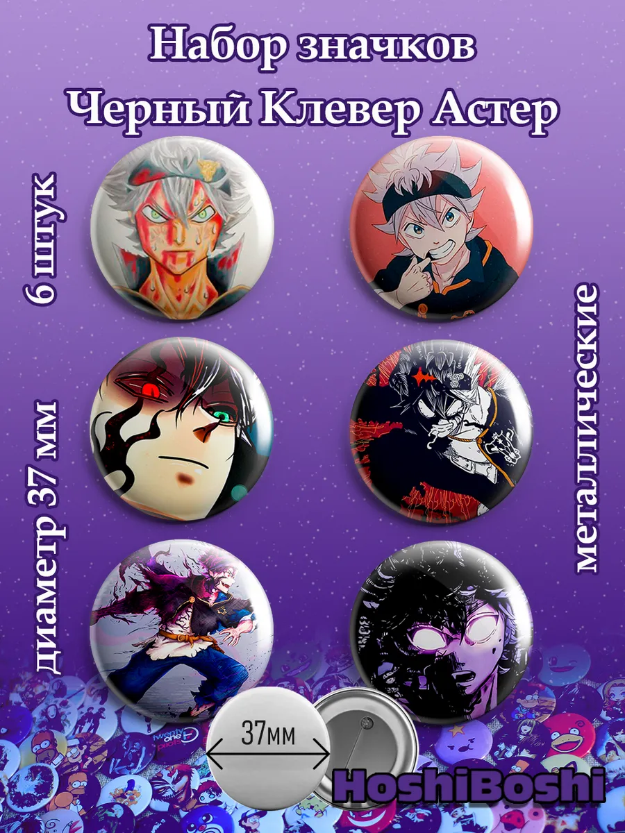 Набор из 6 металлических значков с изображениями из аниме Черный Клевер ( Black Clover ).