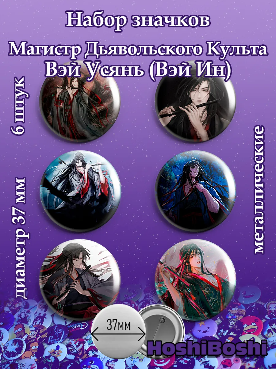 Набор из 6 металлических значков с изображениями из аниме Магистр Дьявольского Культа ( Mo Dao Zu Shi ).