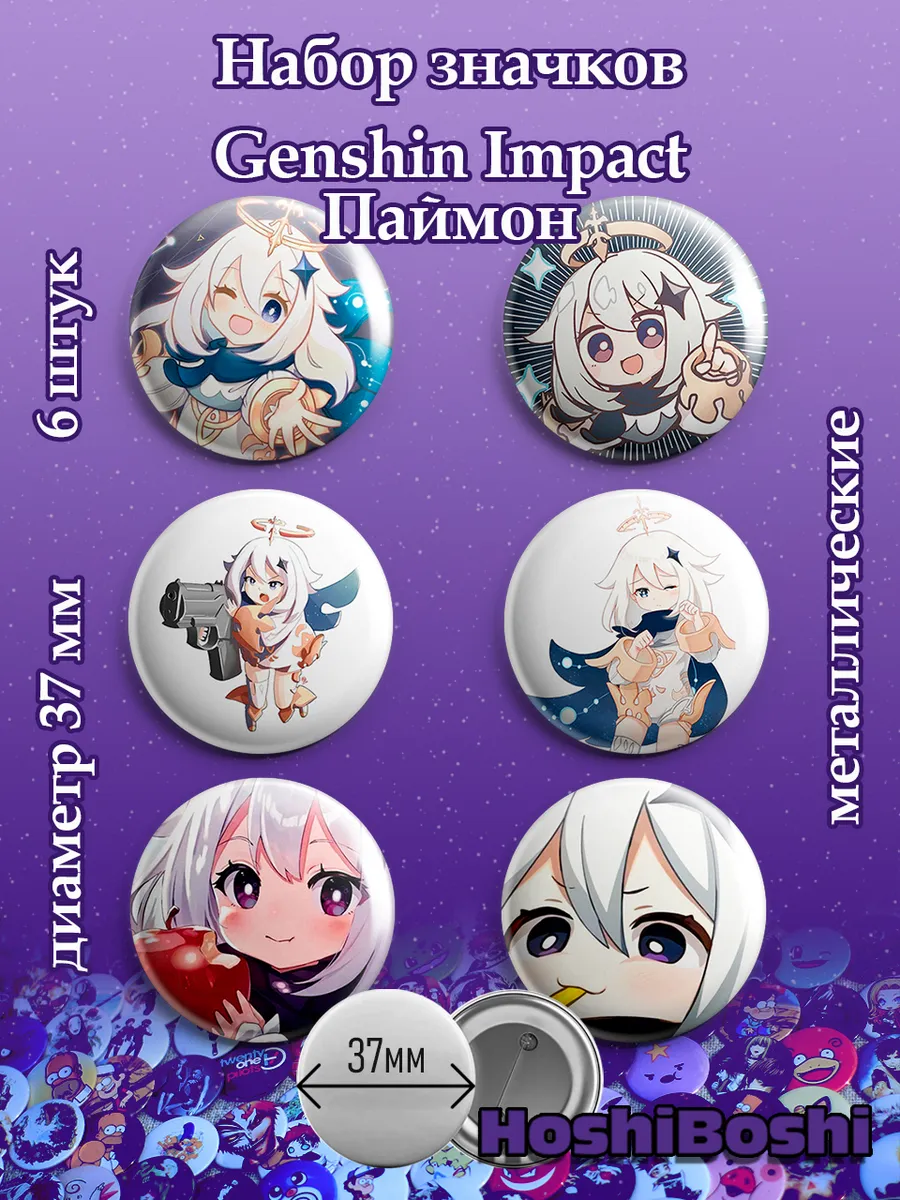 Набор из 6 металлических значков с изображениями из игры Геншин Импакт ( Genshin Impact ).