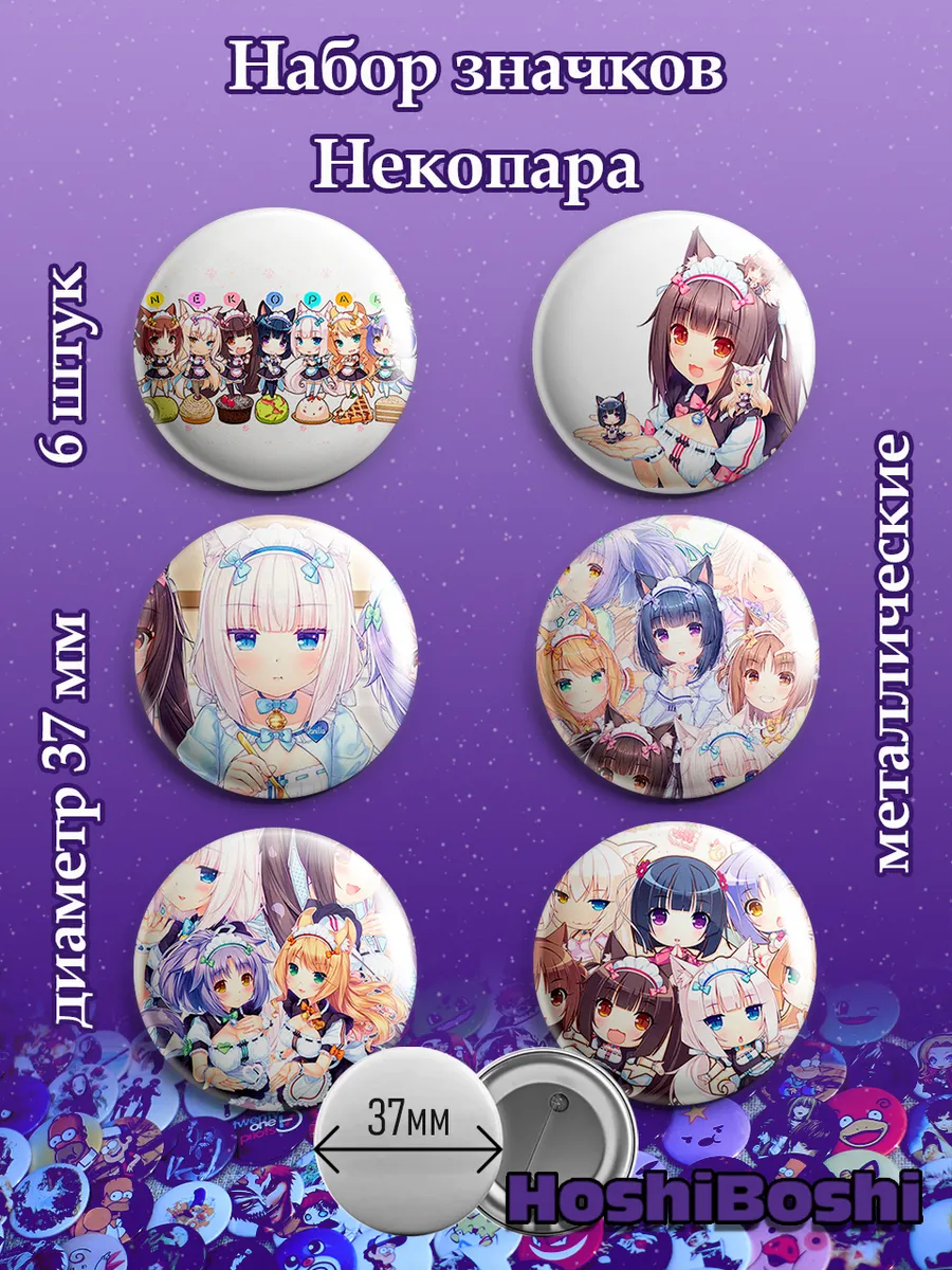 Набор из 6 металлических значков с изображениями из серии визуальных новелл Некопара ( Nekopara ).
