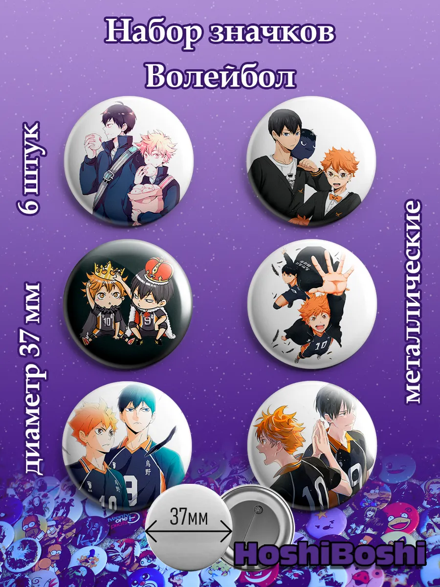 Набор из 6 металлических значков с изображениями из аниме Волейбол ( Haikyu!! ).