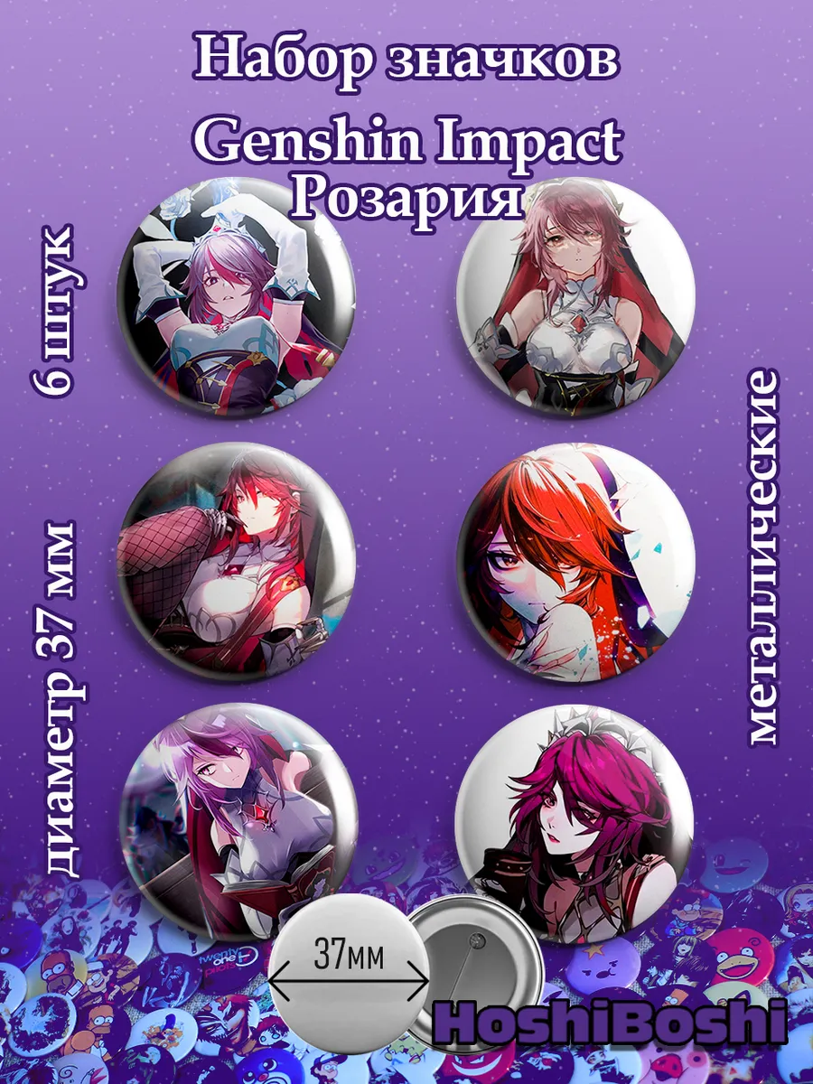 Набор из 6 металлических значков с изображениями из игры Геншин Импакт ( Genshin Impact ).