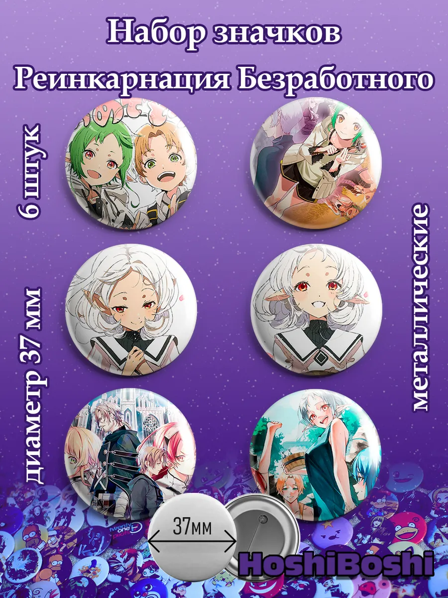 Набор из 6 металлических значков с изображениями из аниме Реинкарнация безработного ( Mushoku Tensei ).