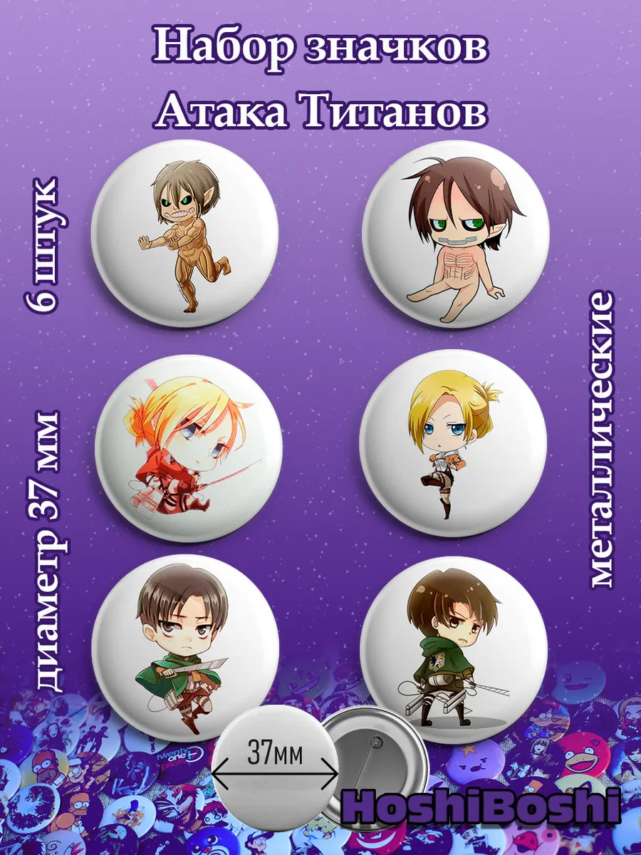 Набор из 6 металлических значков с изображениями из аниме Атака Титанов ( Shingeki no Kyojin Attack on Titan ).