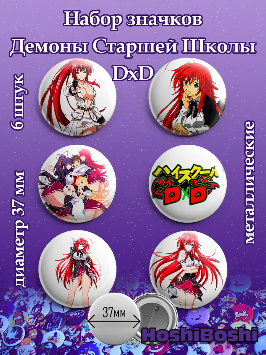 Набор из 6 металлических значков с изображениями из аниме Демоны Старшей Школы ДхД ( High School DxD ).