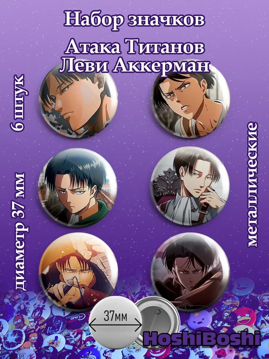 Набор из 6 металлических значков с изображениями из аниме Атака Титанов ( Shingeki no Kyojin Attack on Titan ).